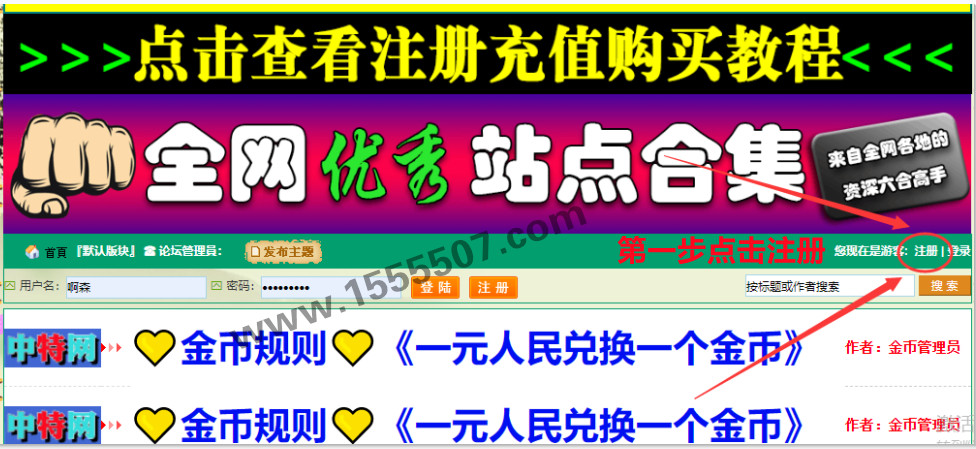 需要充值的会员:请点击这里注册用户名,然后联系管理员通过审核添加金币